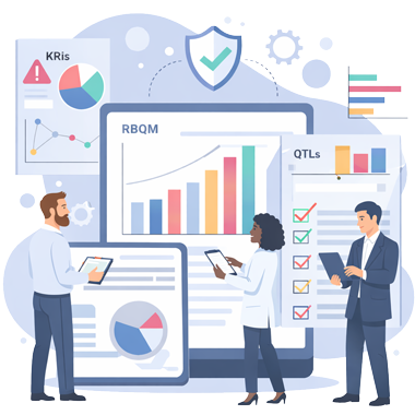 Through centralised data review, Key Risk Indicators (KRIs), Quality Tolerance Limits (QTLs), and advanced analytics, we detect emerging risks early—safeguarding patient safety, strengthening data integrity, and optimising monitoring efficiency.